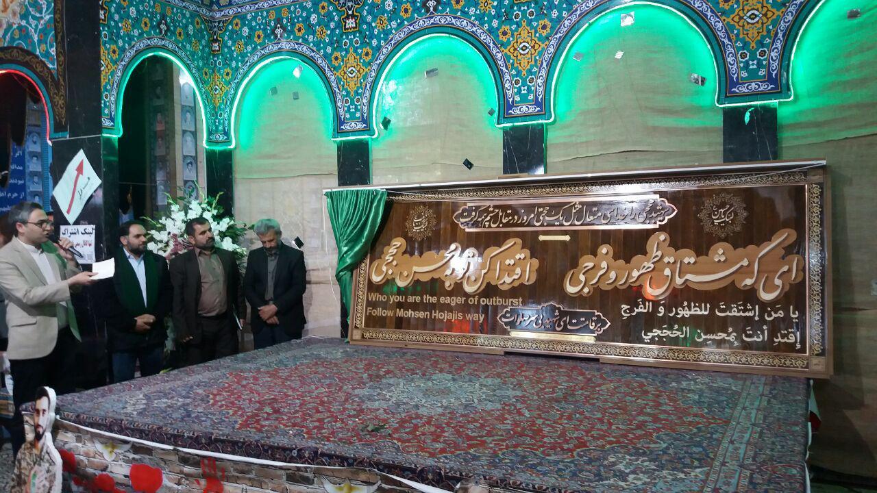 درآیینی از تابلوی معرق شهید محسن حججی در جوار مزار مطهرش رو نمایی شد .