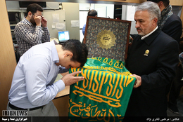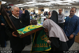 همزمان با دهه کرامت، خادمان حرم امام رضا در قالب کاروان «زیر سایه خورشید» به همراه پرچم متبرک بارگاه منور رضوی در خبرگزاری صدا و سیما حضور یافتند.