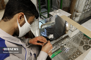 گروه عکس خبرگزاری صدا و سیما؛ حاصل هنر آینه کاری، ایجاد فضایی درخشان و پر تلألو است که از بازتاب پی در پی نور در قطعات بی شمار آینه پدید میآید. در حرم امام رضا علیه السلام از شیوههای متنوعی از آینه کاری استفاده شده است. گچبری روی آینه که با نقاشی همراه است آینه تصویر نامیده میشود؛ استفاده از گچ و آینه را در تزئین رواقهای دارالرحمه و دارالهدایه با به کارگیری طرح گره میتوان مشاهده کرد.