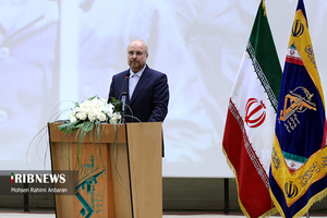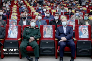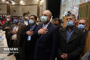 گروه عکس خبرگزاری صدا و سیما؛ این مراسم همزمان با چهلمین سالگرد دفاع مقدس، امروز جمعه ۲۲ اسفند در مشهد برگزار شد. در این مراسم که پیشکسوتان دفاع مقدس و خانواده شهدا حضور دارند، سردار سرتیپ پاسدار اسماعیل قاآنی فرمانده نیروی قدس سپاه پاسداران و محمدباقر قالیباف رئیس مجلس شورای اسلامی به ایراد سخن پرداختند. فرمانده نیروی قدس سپاه پاسداران با بیان اینکه آمریکا در منطقه ما جنایتکار است، گفت: وقتی به آنها میگویم استخوانشان را میشکنیم به وقتش صدایش در میآید.وی متذکر شد: همان میزان که شهدا برای دفاع از انقلاب از همه چیز خود گذشتند خانوادهها نیز در این مسیر آنها را همراهی کردند و بعد از شهادت بار سنگین زندگی را، همسران و مادران شهدا بر دوش کشیدند. خراسان رضوی ۱۷ هزار و ۱۱۱ شهید در راه اعتلای آرمانهای انقلاب اسلامی تقدیم کرده است