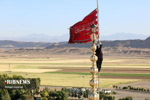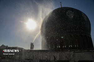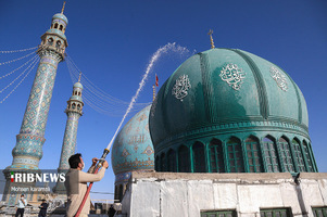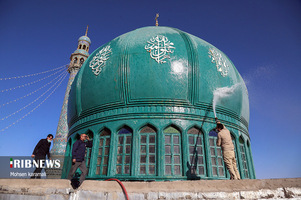 شست و شوی گنبد و تعویض پرچم مسجد مقدس جمکران