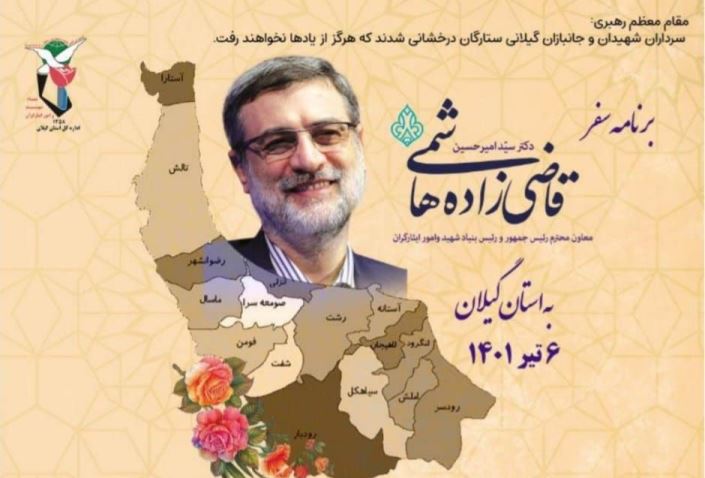 دکتر سید امیرحسین قاضی زاده هاشمی، معاون رئیس جمهور و رییس بنیاد شهید و امور ایثارگران امروز به گیلان سفر می‌کند.