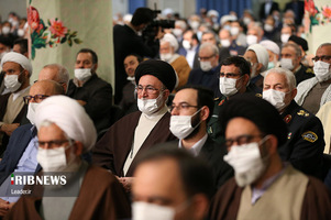 به گزارش گروه عکس خبرگزاری صداوسیما؛ رهبر معظم انقلاب در این دیدار فرمودند:هزاران گنجینه‌ی ممتاز در قرآن و تعلیم اسلام هست، این‌ها را بعثت برای ما آورده است. بعضی از ما مسلمان‌ها این گنجینه‌ها را اصلاً نمیشناسیم، بعضی از ما آن را انکار میکنیم، کفران میکنیم به این هدیه‌های عظیم الهی. بعضی از ما به آن گنجینه‌ها افتخار می کنیم، منتها عمل نمی‌کنیم. نتیجه این است که دنیای اسلام دچار تفرقه، دچار عقب‌ماندگی، دچار ضعف علمی و عملی می‌شود، نتیجه‌اش این است. در یک دوره‌ای مسلمان‌ها با عمل کردن نصفه نیمه، نه عمل کردن کامل، به این گنجینه‌های عظیم، توانستند بزرگترین تمدن‌های زمان خودشان را ایجاد کنند. ما ضعف‌های دنیای اسلام را می‌توانیم با رجوع به این گنجینه‌های هدیه شده‌ی از سوی بعثت به خودمان برطرف کنیم