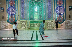 در آستانه ولادت حضرت ولیعصر (عج) مسجد مقدس جمکران توسط خادمین این مسجد غبار روبی و شست شو شد