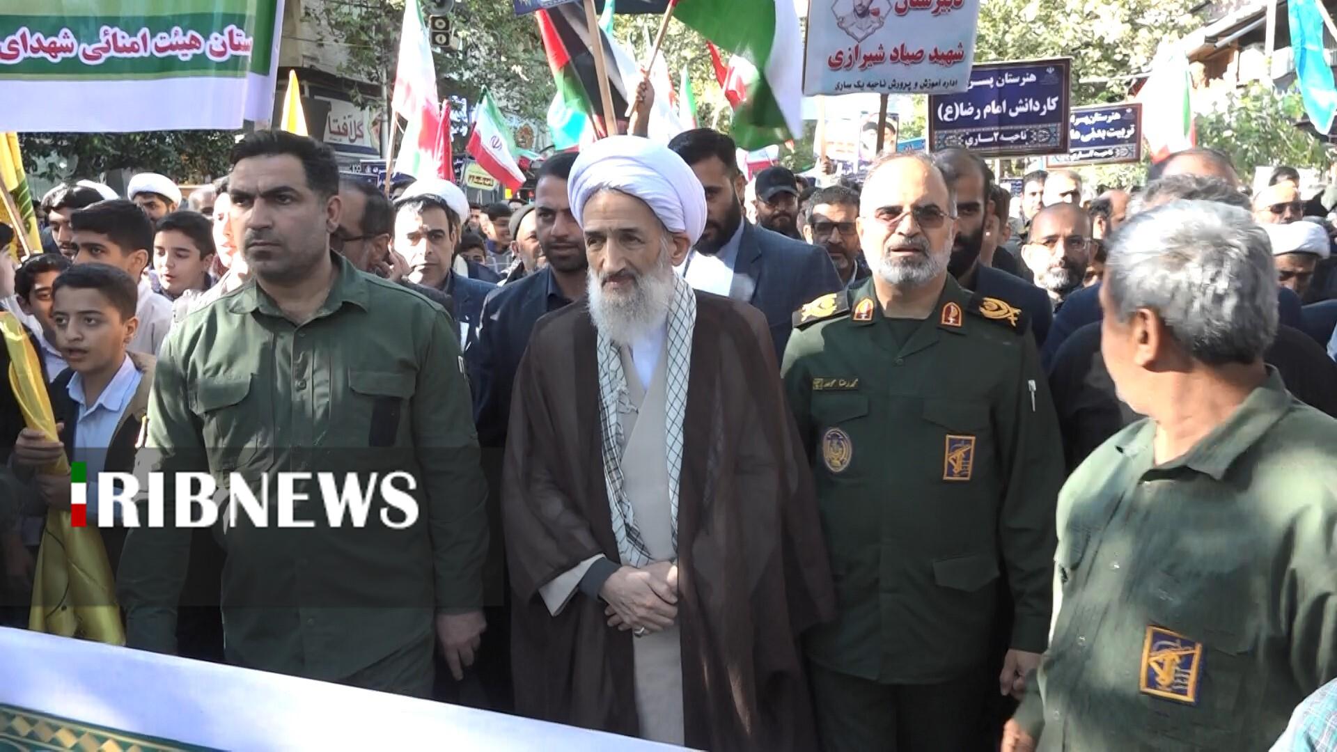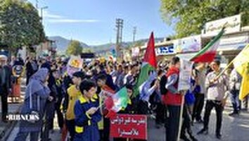 شرکتکنندگان با فریادهای استکبارستیزانه، حمایت همهجانبه خود را از مردم مظلوم فلسطین و محکومیت جنایات رژیم صهیونیستی در جنگ اخیر غزه اعلام کردند.