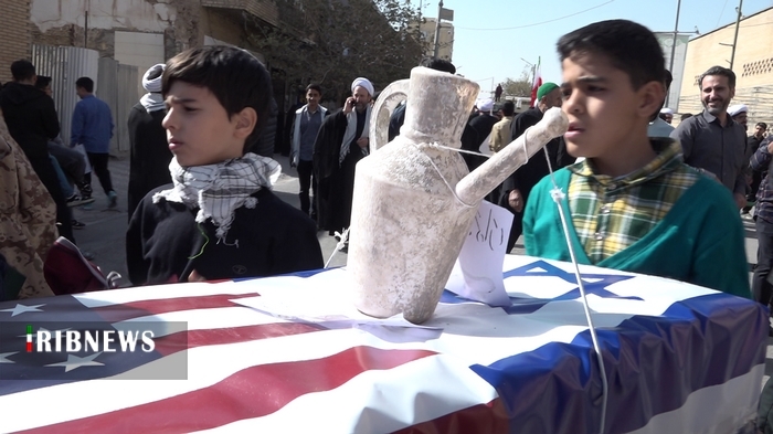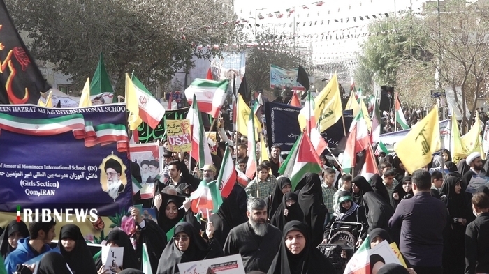 به گزارش خبرگزاری صدا و سیما؛ مرکز قم، راهپیمایی یوم الله ۱۳ آبان با حضور پرشور قشرهای مختلف مردم به ویژه دانش آموزان برگزار شد. شرکت کنندگان به ویژه نوجوانان و جوانان در این راهپیمایی با شعارهای مرگ برآمریکا و مرگ بر اسرائیل خشم و انزجار خود را از استکبار جهانی ابراز کردند.