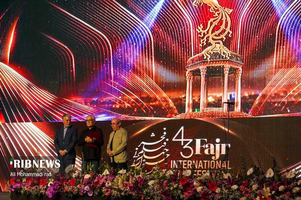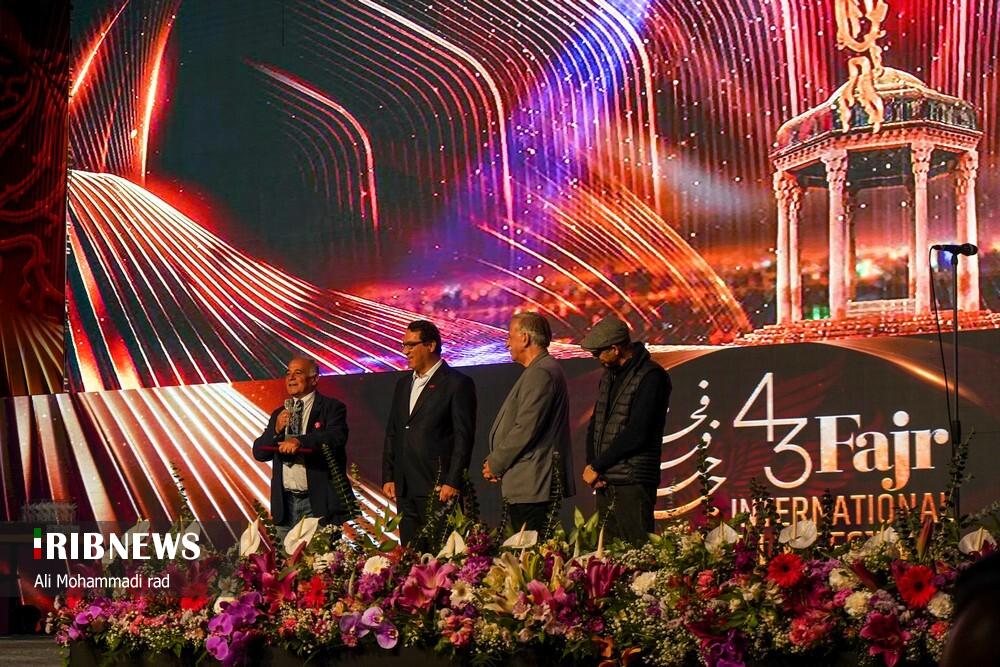 مراسم اختتامیه چهل و سومین جشنواره جهانی فیلم فجر شامگاه سه شنبه ۱۱ آذر ۱۴۰۴ با حضور سیدعباس صالحی وزیر فرهنگ و ارشاد اسلامی و رییس سازمان سینمایی در مجموعه هنر شهر آفتاب شیراز برگزار شد. «علی نصیریان» , «علیرضا خمسه»، «ایرج طهماسب»، «محمدرضا شریف نیا» و «مهدی فقیه» از جمله بازیگران میهمان در این جشنواره بودند.
