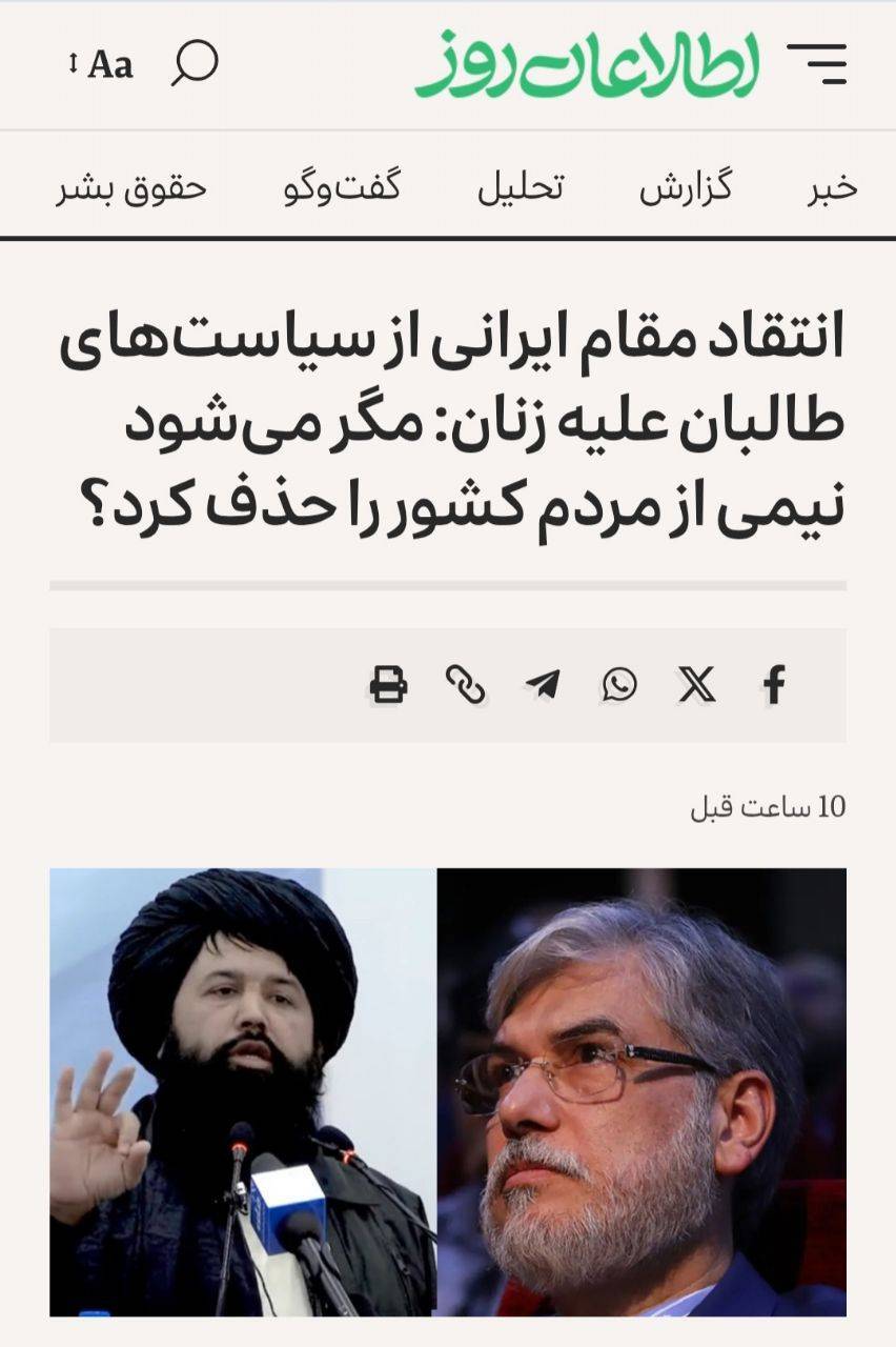 - انتقاد مقام ایرانی از سیاستهای طالبان: مگر میشود نیمی از مردم این کشور را حذف کرد