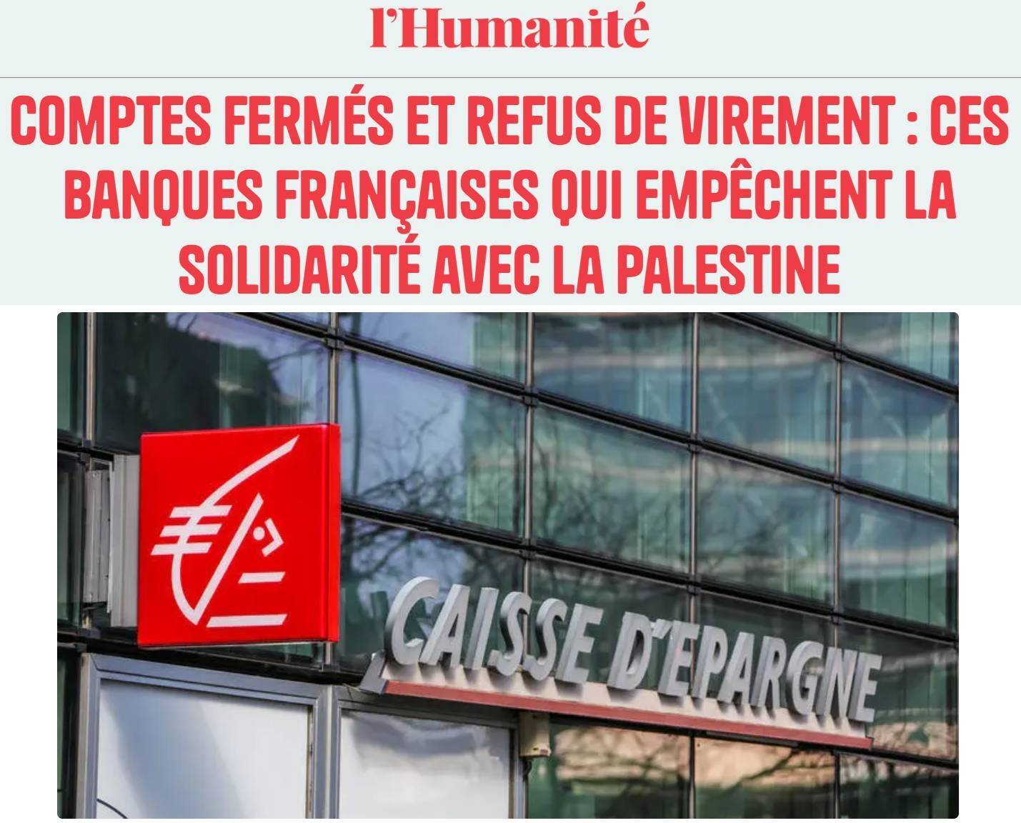 – حسابهای بانکی بسته، انتقال پول غیرممکن، این بانک فرانسوی از کمکها و همبستگی مردم با فلسطین جلوگیری و مانع ایجاد میکند